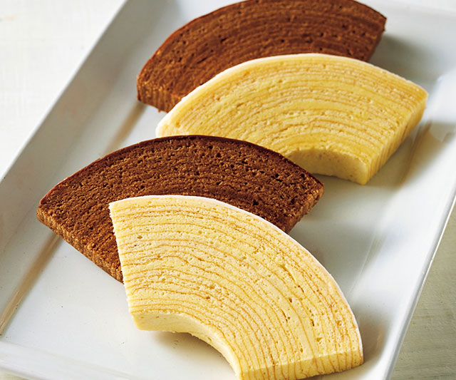 1919年、日本で初めてバウムクーヘンを焼きあげた〈ユーハイム〉。本場ドイツの基準にならい、昔ながらの製法で丁寧に焼くことで、豊かな風味としっとりとしたやわらかな口どけを楽しめます。