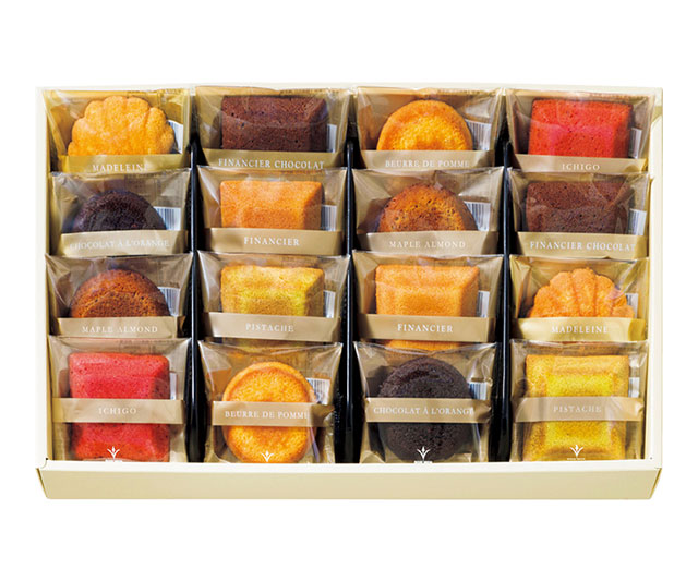 メープルアーモンドケーキ・いちごバターケーキ・チョコオレンジケーキ・マドレーヌ・フィナンシェピスタチオ・りんごバターケーキ・フィナンシェ・フィナンシェショコラ×各2