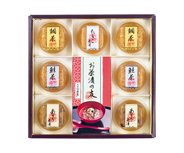 たらこ茶漬×1、鮭茶漬・鯛茶漬・あさり茶漬×各2、各42g、お茶漬の友(海苔・あられ)×7