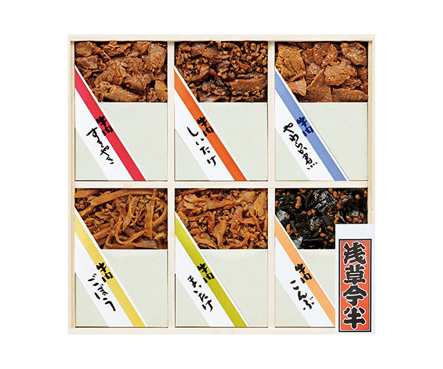 明治28年(1895年)創業の〈浅草今半〉が、素材と製法にこだわって仕上げた牛肉佃煮の詰合せです。牛肉の風味を損なわずにすき焼風に煮あげた佃煮は、ご飯のお供にも酒肴にもぴったりです。