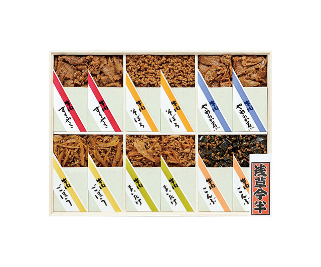 牛肉すきやき・牛肉そぼろ・牛肉やわらか煮・牛肉ごぼう・牛肉まいたけ・牛肉こんぶ各50g×各2