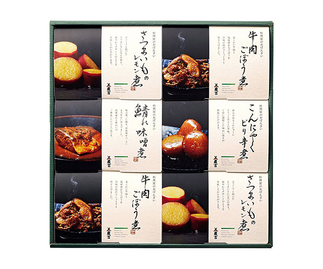 牛肉ごぼう煮60g・さつまいものレモン煮70g×各2、鯖の味噌煮60g・こんにゃくピリ辛煮(5個入)×各1