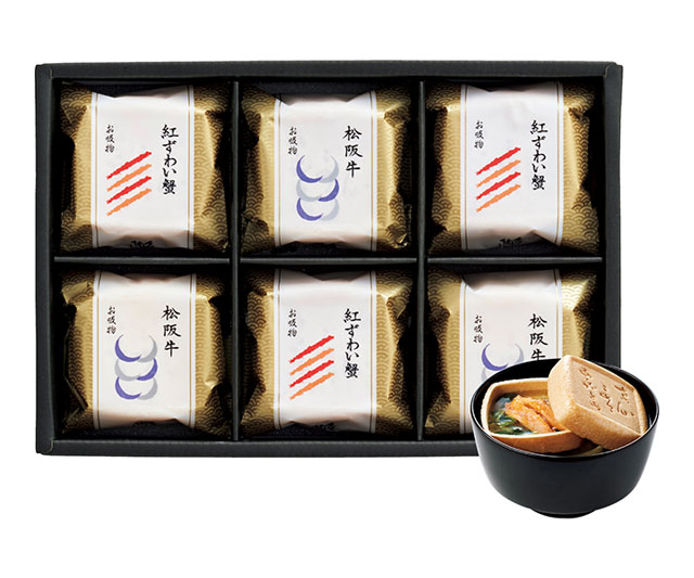 - 本格和風だしお吸物(紅ずわい蟹・松阪牛×各3)
