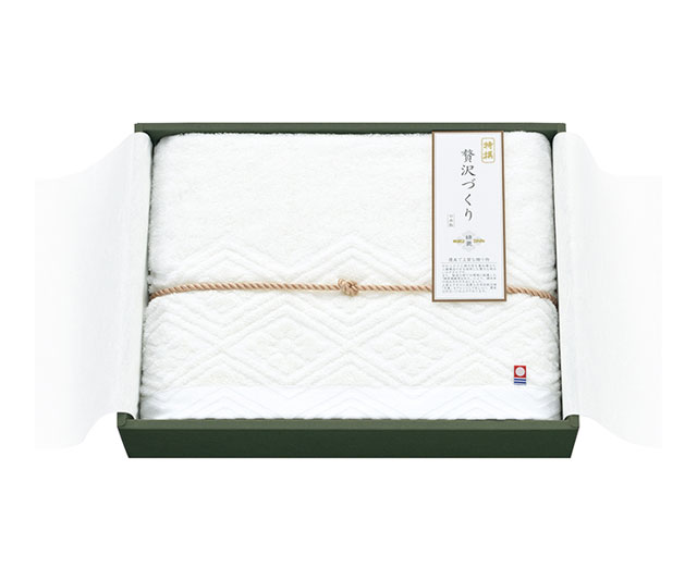やわらかさと弾力性を兼ね備えた二層構造の糸を、パイルに使用した贅沢な風合いのタオルです。素材の魅力を活かした上質なタオルに日本の伝統紋様である「花菱」をアレンジしてあしらい、優美な佇まいに仕上げています。タオルの産地「今治」にて生産された今治タオルブランド商品です。