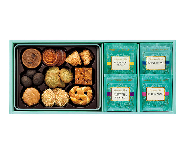 - ロイヤルブレンド・クイーンアン×各3/英国製(茶葉:インド・スリランカ(セイロン))、アールグレイクラシック×3/英国製(茶葉:中国)、ブレックファスト×3/英国製(茶葉:インド)、ビスケットセレクション110g/日本製