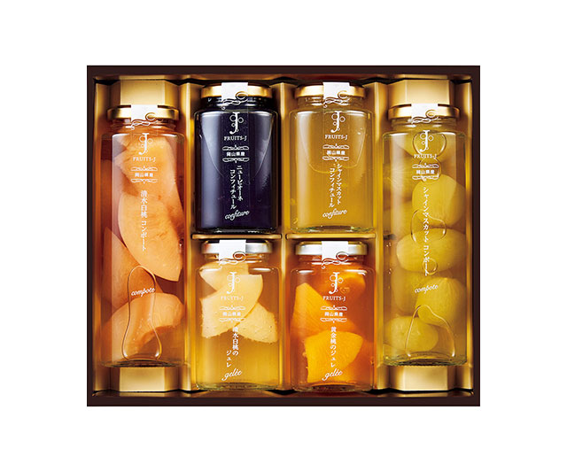 岡山県産の桃と葡萄を使用した、絶妙な美味しさの口どけのよいジュレ。それぞれの時期に収穫し、丁寧にシロップ漬けにしたコンポート。果物の味を大切に、低糖度に仕上げたコンフィチュールの詰合せです。