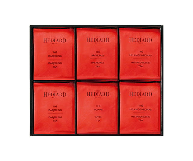 ブレックファスト×5/フランス製(茶葉:スリランカ・インド)、ダージリン×5/インド製、エディアールブレンド×5/フランス製(茶葉:中国)、アップル×5/フランス製(茶葉:スリランカ)