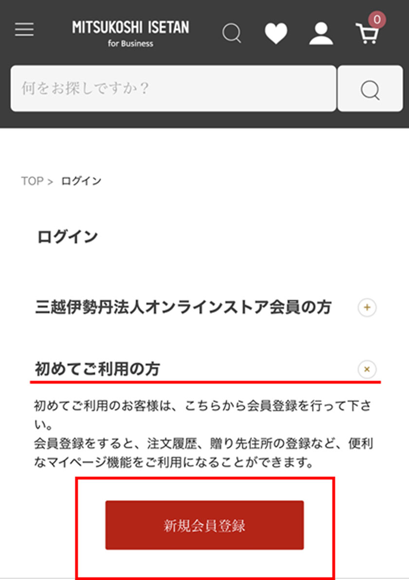 初めてご利用の方をタップし、「新規会員登録」ボタンをタップしてください。