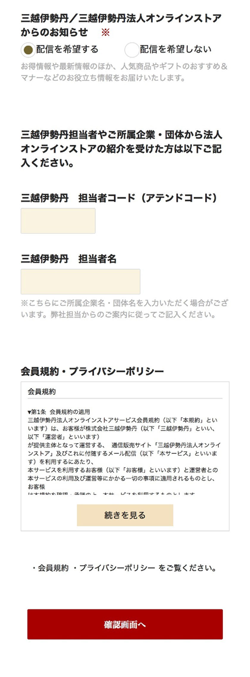 必須項目を入力し、[確認する]ボタンをタップして確認画面に進みます。