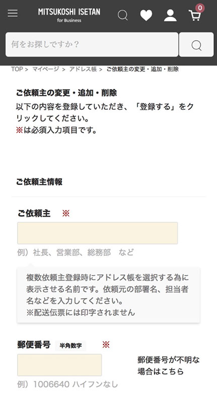 ※会員登録時の情報が自動的に依頼主情報として登録されています。