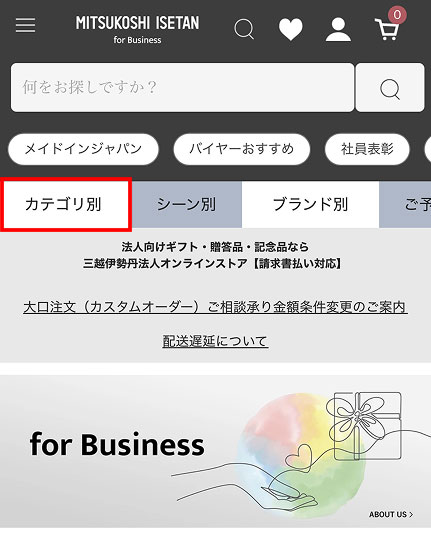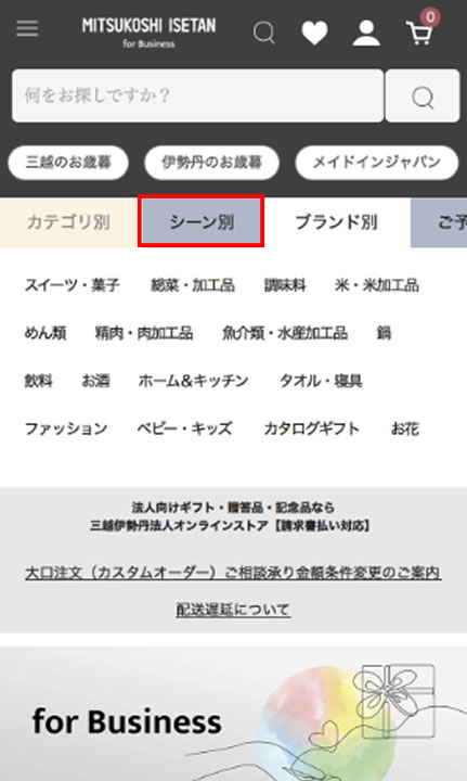 - ページ上部の「カテゴリ別」「シーン別」などの項目にカーソルを合わせ、お客様のニーズにあった検索方法をご利用ください。