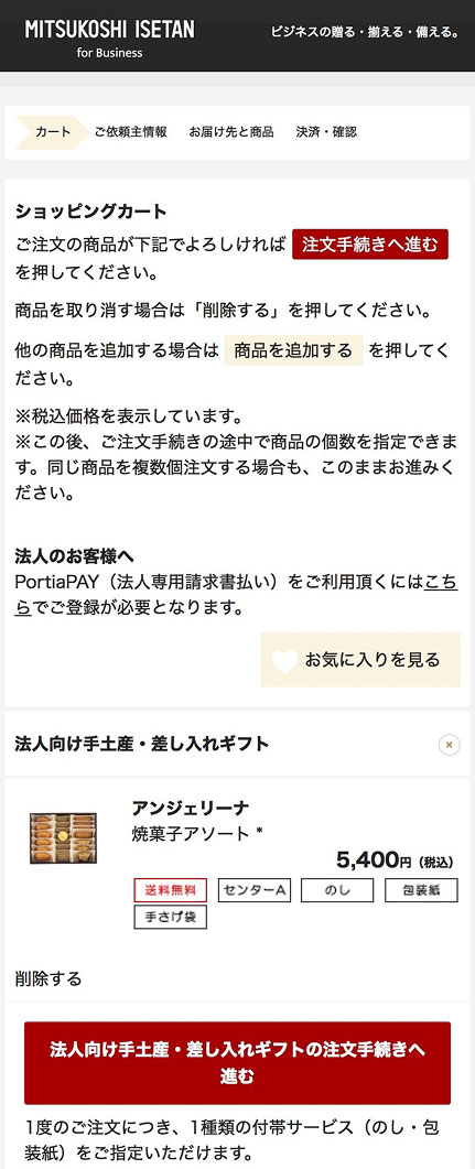 - 商品を確認し、[注文手続きへ進む]をタップします。