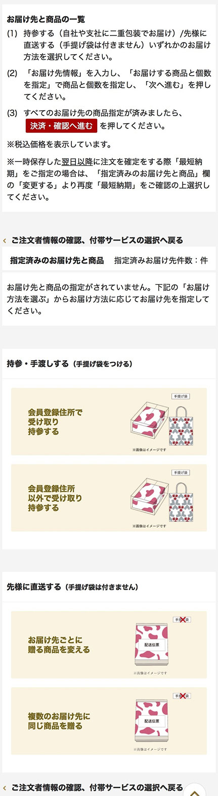 - お届け先の一括登録、アドレス帳ダウンロードにつきましてはPCのみご利用いただけます。PCからご確認くださいませ。