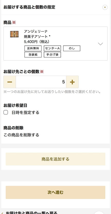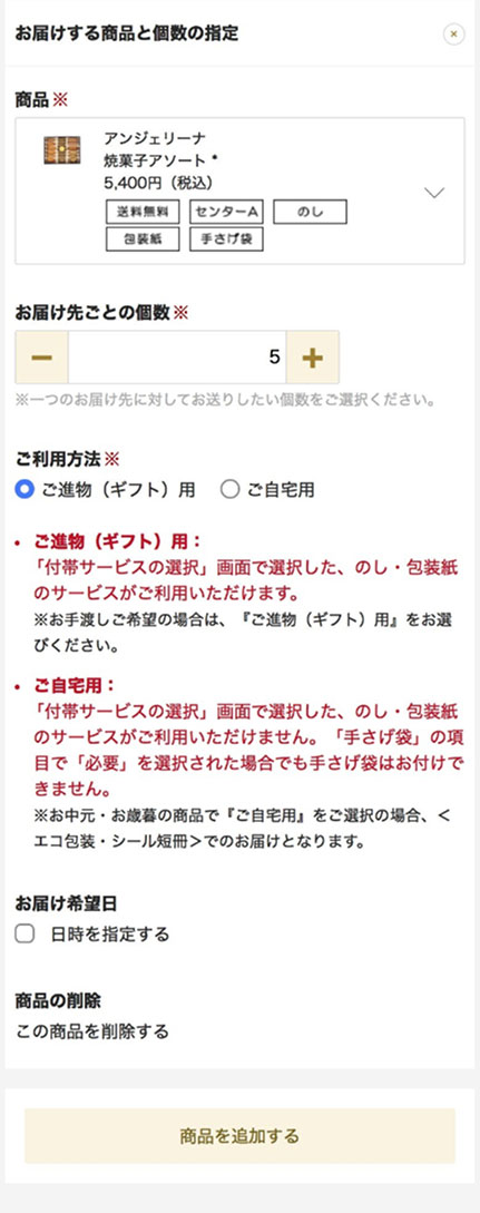 商品が複数種類の場合は「商品を追加する」から次の商品を同じように指定してください。
