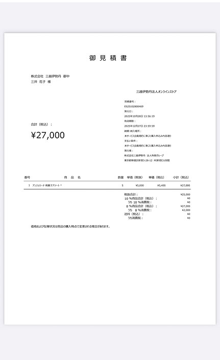 - 見積書はスマートフォン版でお出しすることができません。PC版に切り替えていただくことで表示することが可能になります。