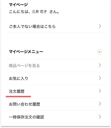 - 「注文履歴一覧」ページの下側の「PCサイトで見る」をタップ。